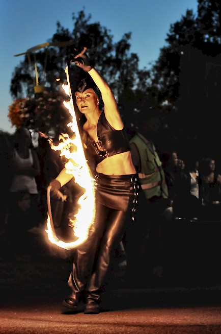 Fire Ladys over 20 years performing career with fire, guarantees for audience pleasant experience. Versatility with fire equipments: staffs, dragonstaff, poi, hoop, clubs, jumping rope and fans , makes it possible to customize shows in very wide variations. Fire Lady also designes and customes her own showclothing so all new ideas are also wellcome.